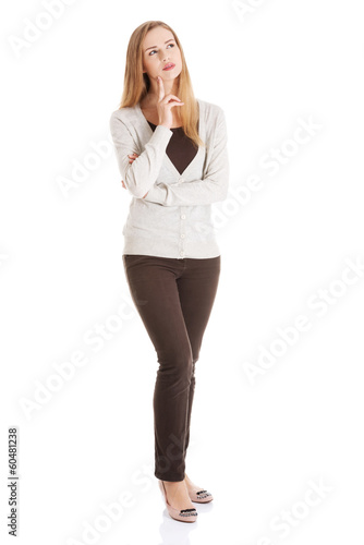 Fototapeta premium Portrait of beautiful casual woman thinking.