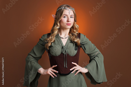 Obraz premium Portrait of beautiful elf girl on brown gradient background