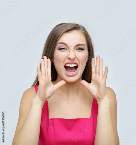 © lado2016, Fototapeta premium Portrait of beautiful girl screaming at the camera