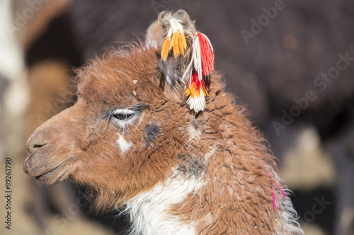 Naklejka premium Portrait of beautiful Llama, Bolivia