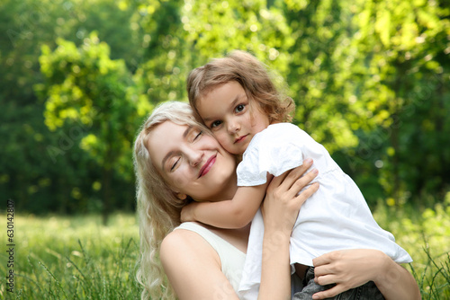 Fototapeta premium Portrait of beautiful mother with her cute daughter outdoors