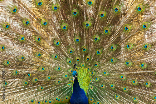 © serejkakovalev, Naklejka premium portrait of beautiful peacock in the park