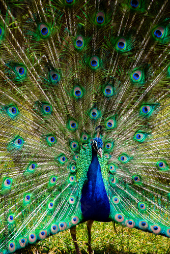 © pszabo, Naklejka premium Portrait of beautiful peacock with feathers out