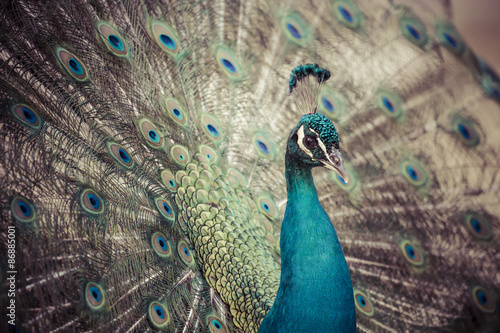© Curioso.Photography, Obraz premium Portrait of beautiful peacock with feathers out
