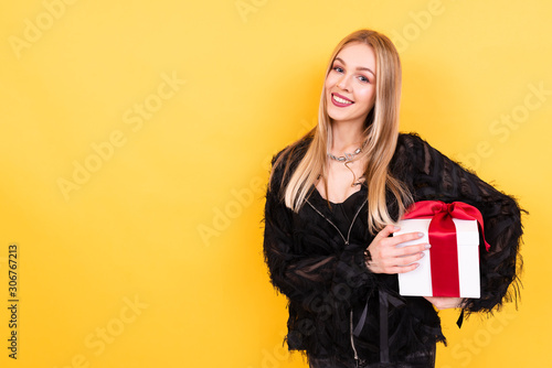 Fototapeta premium portrait of beautiful smiling girl with gift box