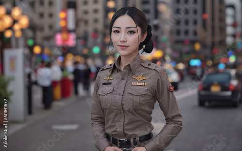 © Flash, Fototapeta premium portrait of beautiful Thai asian police woman wearing uniform, Generative AI