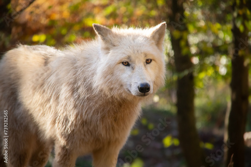 Obraz premium Portrait of beautiful white arctic wolf in Autumn.
