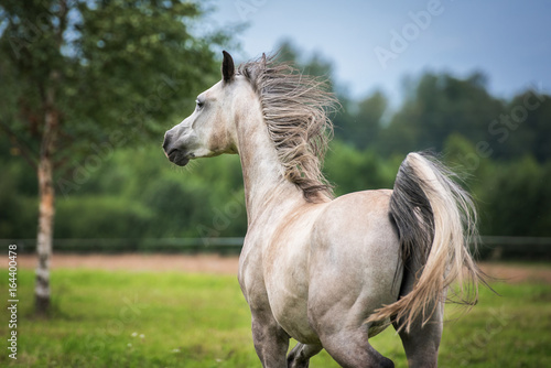 © Rita Kochmarjova, Fototapeta premium Portrait of beautiful white running arabian horse