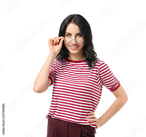 Fototapeta premium Portrait of beautiful woman on white background