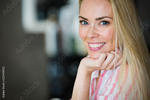 © NDABCREATIVITY, Naklejka premium Portrait of beautiful woman with long hair