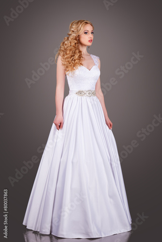 Fototapeta premium Portrait of Beautiful Young Fashion Bride.bride in white wedding