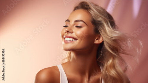 Fototapeta premium Portrait of beautiful young woman with clean fresh healthy skin