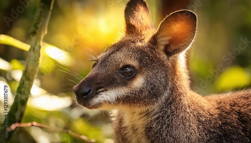 Fototapeta premium Portrait of Bennetts Wallaby Standing in a Lush Australian Forest, Capturing...