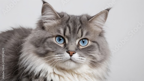 Obraz premium Portrait of Blue siberian cat on grey background