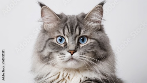 Obraz premium Portrait of Blue siberian cat on grey background