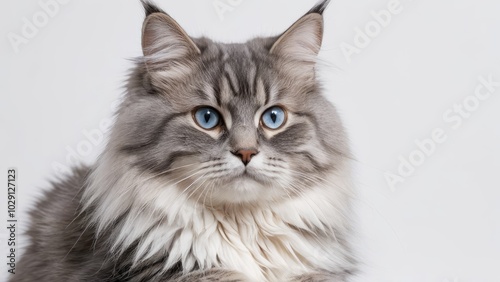 Obraz premium Portrait of Blue siberian cat on grey background