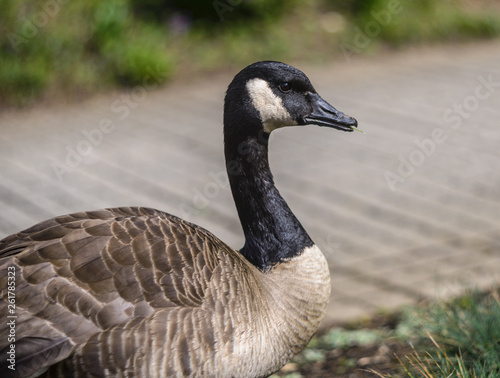 Fototapeta premium Portrait of canadian goose with white and black head and neck.