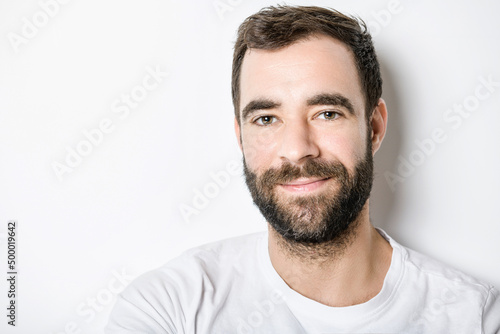 © Louis-Paul Photo, Fototapeta premium portrait of casual young man with beard on white background