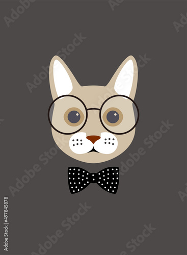 © hakule, Obraz premium Portrait of cat, wearing glasses, like a scholar, cool style