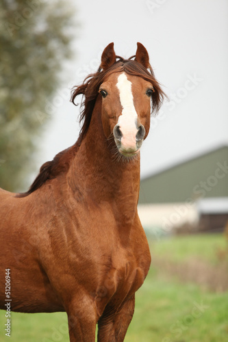 Fototapeta premium Portrait of chestnut welsh pony