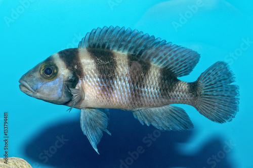 © NERYX, Fototapeta premium Portrait of cichlid fish (Neolamprologus sexfasciatus)