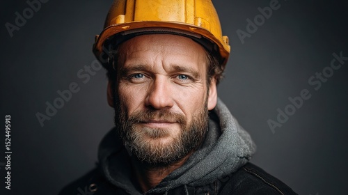 © WS Studio 1985, Fototapeta premium Portrait of Construction Worker with Hard Hat and Strong Expression