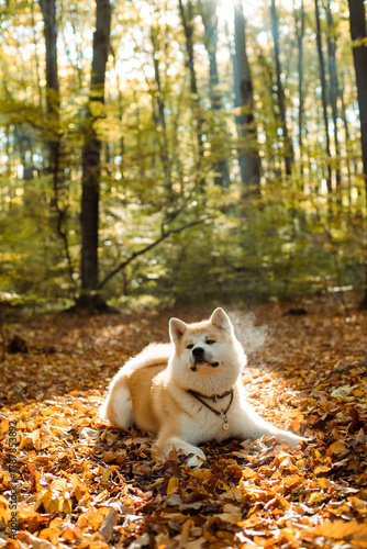 © kurapatka, Fototapeta premium portrait of cute Japanese Akita puppy in autumn forest