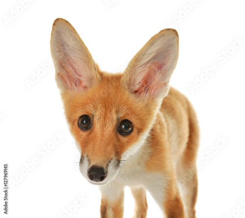 Fototapeta premium Portrait of cute little fox cub isolated on white