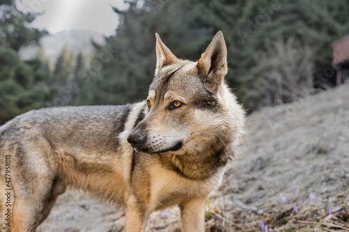 © Munka, Fototapeta premium Portrait of czechoslovakian wolfdog on the meadow.
