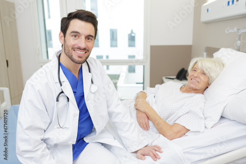 Fototapeta premium portrait of doctor with patient in background