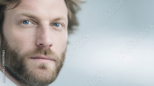 Fototapeta premium portrait of endocrinologist positioned on left side of frame with concentrated expression
