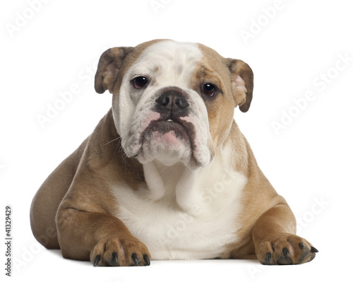 Fototapeta premium Portrait of English Bulldog, 7 months old