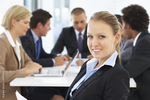 © Monkey Business, Fototapeta premium Portrait Of Female Executive With Office Meeting In Background