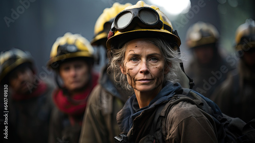 © Ai Inspire, Fototapeta premium Portrait of Firefighter at Wildfire - Generative Ai