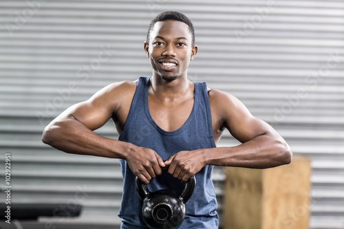 © WavebreakmediaMicro, Fototapeta premium Portrait of fit man lifting dumbbells