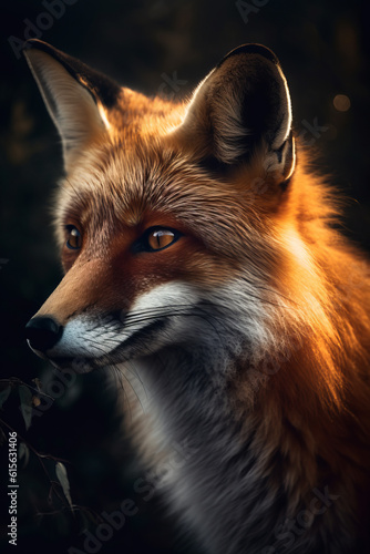 Fototapeta premium Portrait of Fox Dramatic and Cinematic Lighting Photography, Generative AI