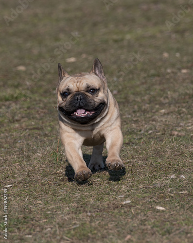 Fototapeta premium Portrait of French bulldog. Selective focus on the dog