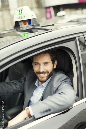 © ldprod, Naklejka premium Portrait of French Parisian taxi driver. Looking at camera