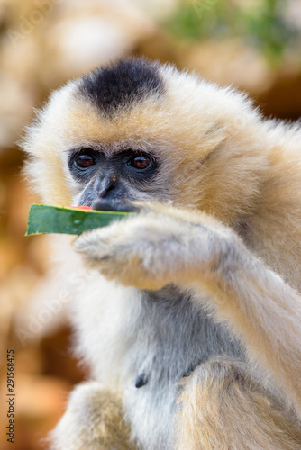 © Luba Shushpanova, Obraz premium Portrait of gibbon on the blurred background.