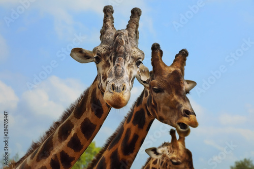 © Alexey Kuznetsov, Naklejka premium Portrait of giraffe on blue sky background