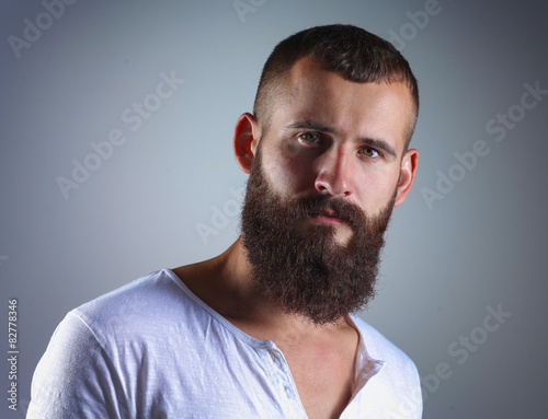 Obraz premium Portrait of handsome bearded man isolated on grey background