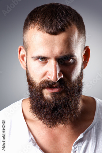 Obraz premium Portrait of handsome bearded man standing, isolated on grey
