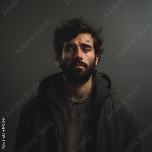 © Marcelo, Fototapeta premium Portrait of handsome guy man on a dark and black background with dark clothes