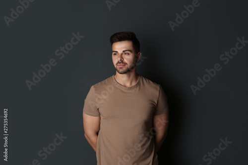 Fototapeta premium Portrait of handsome man on dark background