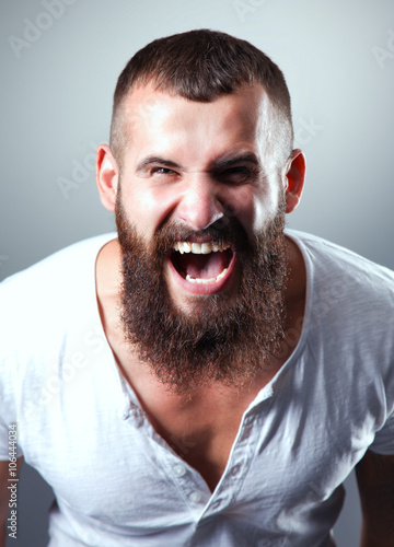 Obraz premium Portrait of handsome man standing, isolated on grey background