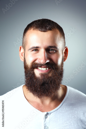 Obraz premium Portrait of handsome man standing, isolated on grey background