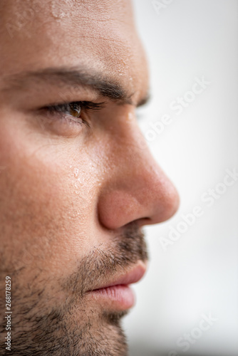 © LIGHTFIELD STUDIOS, Fototapeta premium portrait of handsome man with sweaty face suffering from heat on white background