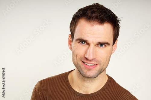 Fototapeta premium Portrait of handsome smiling man in brown shirt