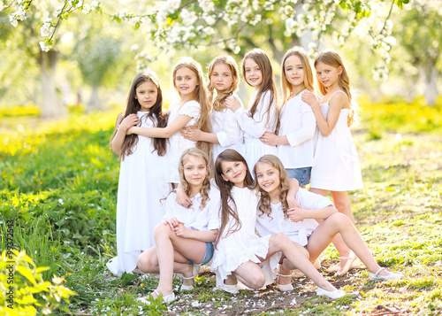 © zagorodnaya, Fototapeta premium Portrait of happy children on nature in summer