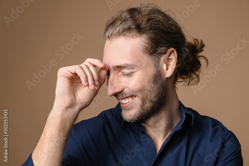 © Pixel-Shot, Obraz premium Portrait of happy man on color background